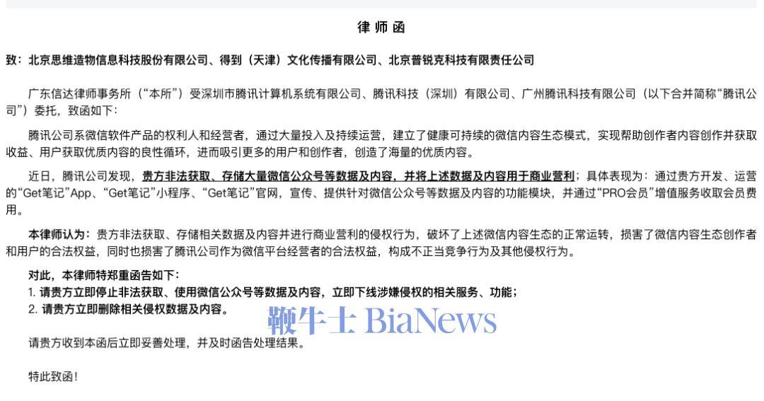 得到联创:被股东腾讯举报Get笔记不正当竞争,不过其猜测大厂大概率会是腾讯,来对Get笔记进行深入调查,因为"字节啊,称Get笔记被腾讯举报。得到App联合创始人快刀青衣发布公众号文章,公司也在今年4月17日收到过来自腾讯的律师函。今日上午三十多位执法人员接到了某大厂的举报,